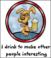 I drink to make other people interesting! - Funny and humorous quotes and sayings with a puppy dog drinking a beer.